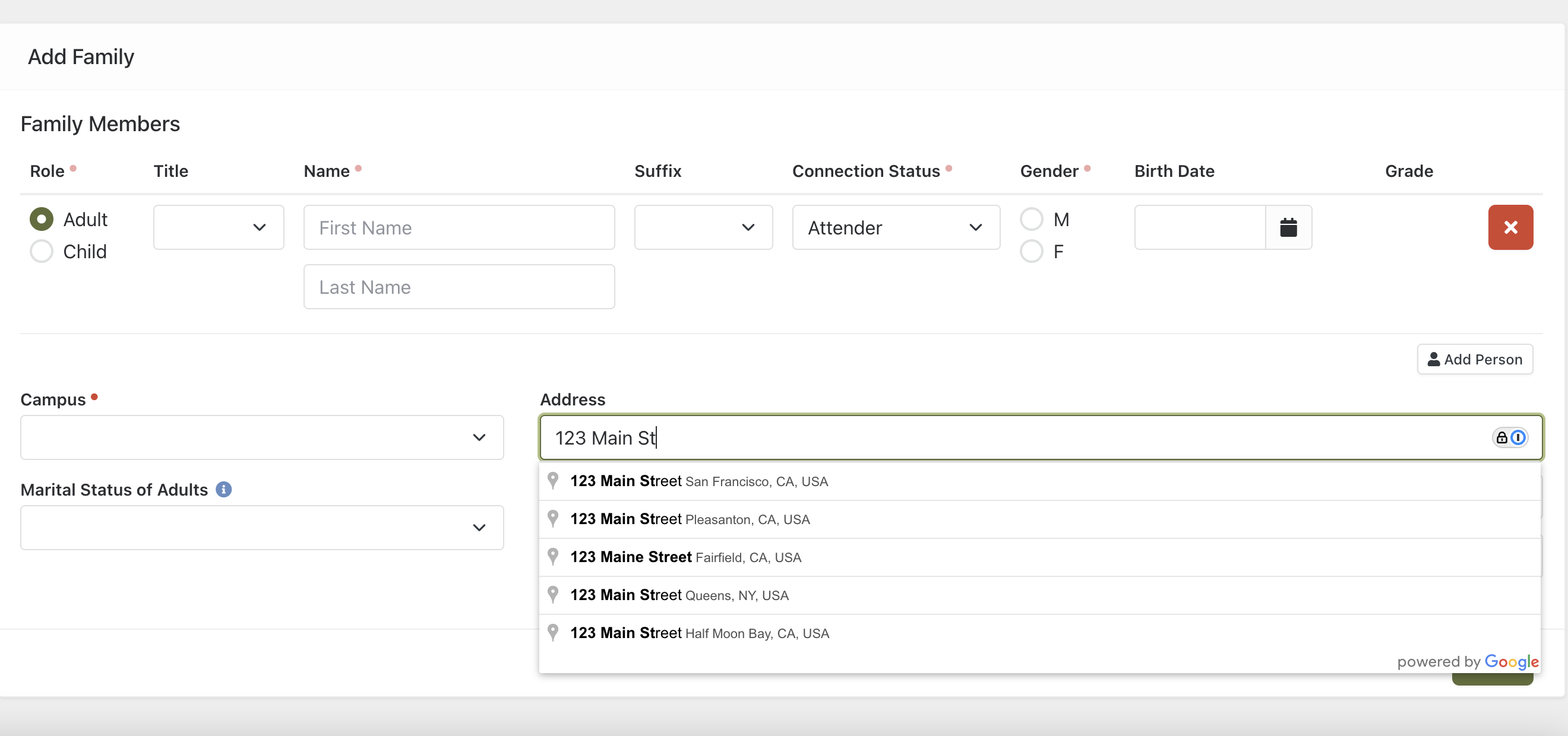 Go to your Add Family page (or whichever one you want autocomplete on)
