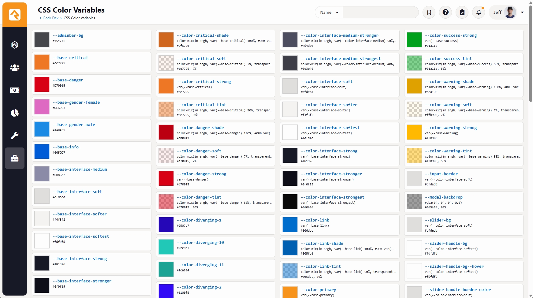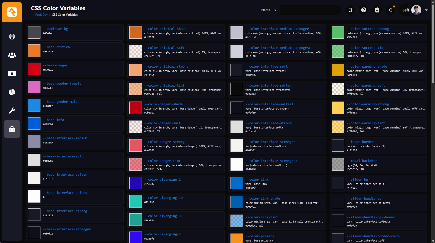 1 CSS Color Variables Quick Reference Shared by Jeff Richmond, The Well Community Church 2 days ago Web, CMS Intermediate Description I'm in the process of getting our Rock instance ready to upgrade to v18, which mostly consists of finding the many places where my internal site customizations are broken in the new RockNextGen theme… especially in dark mode. During this process I found myself repeatedly having to sift through the theme's CSS to find various color variables that I needed for my fixes. In a fit of frustration (and procrastination), I came up with this recipe that finds all color variables available to the page and displays them for quick reference. Each variable is displayed with a color swatch, the variable name, the variable's raw value and, when applicable, the final calculated color value formatted as a hex value, followed by an opacity percentage. Clicking on the variable name will copy the name, wrapped with var() to your clipboard for easy pasting into your own CSS. How-To Upload the Transparent Background Image Upload the check-pattern.png file to your server. I uploaded mine to content/internalsite/images/check-pattern.png. You can upload it wherever you want. Just be sure to make a note of its location for later. Create a "CSS Color Variables" Page We have a "Rock Dev" section under out Admin Tools menu, so I placed the new page there. You can put it wherever makes the most sense for you. Page Title: CSS Color Variables Site: Rock RMS Layout: Full Width Icon CSS Class: fa fa-palette Page Routes: admin/dev/css-colors Add an HTML Content Block to the Main Zone Block Properties: No changes are needed for the block properties. HTML Content: Double check the swatch background image path in the CSS near the bottom to make sure it matches where you uploaded check-pattern.png. <div id="CSSColorSwatches"></div> <script> /**** General Helper Utilities ****************************************/ // Single shared test element for color validation and computing var globalTestElement = null; // Return a reusable off-screen element for browser-based color testing function getTestElement() { // Create the element the first time it is needed if (!globalTestElement) { globalTestElement = document.createElement('span'); // Position it off-screen so it does not affect page layout // or appear visually to the user. globalTestElement.style.position = 'absolute'; globalTestElement.style.left = '-9999px'; globalTestElement.style.top = '-9999px'; document.body.appendChild(globalTestElement); } // Always reset the color value globalTestElement.style.color = ''; return globalTestElement; } // Escape text so it can be safely inserted into HTML function escapeHTML(htmlString) { if (htmlString === null || htmlString === undefined) { return ''; } return String(htmlString) .replace(/&/g, '&') .replace(/</g, '<') .replace(/>/g, '>') .replace(/"/g, '"') .replace(/'/g, '''); } // Create a debounced version of a function to delay execution until // an event stops firing for the specified amount of time function debounce(callbackFunction, delayMilliseconds) { var timeoutId; return function() { var context = this; var args = arguments; clearTimeout(timeoutId); timeoutId = setTimeout(function() { callbackFunction.apply(context, args); }, delayMilliseconds); }; } /**** Color Parsing Helpers ****************************************/ // Ensure a numeric RGB channel stays within the 0-255 range function clampColorChannel(channelValue) { // Return null if non-numeric if (isNaN(channelValue)) { return null; } return Math.max(0, Math.min(255, channelValue)); } // Ensure an alpha value stays within the 0-1 range function clampAlpha(alphaValue) { // Return null if non-numeric if (isNaN(alphaValue)) { return null; } return Math.max(0, Math.min(1, alphaValue)); } // Convert a single RGB component to a hex string function componentToHex(colorComponent) { var hexValue = colorComponent.toString(16); return hexValue.length === 1 ? '0' + hexValue : hexValue; } // Parse a single RGB channel value (percentage or whole numbers) function parseRGBChannel(channelValue) { if (channelValue === undefined || channelValue === null) { return null; } // Convert percentages to whole numbers if (/%$/.test(channelValue)) { return clampColorChannel(Math.round(parseFloat(channelValue) * 255 / 100)); } return clampColorChannel(Math.round(parseFloat(channelValue))); } // Parse a single alpha channel value (decimal, percentage or null) function parseAlphaChannel(alphaValue) { // Treat missing or null values as 100% opaque if (alphaValue === undefined || alphaValue === null || alphaValue === '') { return 1; } // Convert percentages to whole numbers if (/%$/.test(alphaValue)) { return clampAlpha(parseFloat(alphaValue) / 100); } return clampAlpha(parseFloat(alphaValue)); } // Build a normalized color object after all channels have been parsed function buildParsedColor(colorParts) { if ( colorParts.red === null || colorParts.green === null || colorParts.blue === null || colorParts.alpha === null ) { return null; } return { hex: '#' + componentToHex(colorParts.red) + componentToHex(colorParts.green) + componentToHex(colorParts.blue), alpha: colorParts.alpha }; } // Parse rgb() and rgba() color strings function parseRGBColor(colorString) { // Match classic comma-separated rgb()/rgba() syntax var rgbCommaMatch = colorString.match(/^rgba?\(\s*([\d.]+%?)\s*,\s*([\d.]+%?)\s*,\s*([\d.]+%?)(?:\s*,\s*([\d.]+%?))?\s*\)$/i); if (rgbCommaMatch) { return buildParsedColor( { red: parseRGBChannel(rgbCommaMatch[1]), green: parseRGBChannel(rgbCommaMatch[2]), blue: parseRGBChannel(rgbCommaMatch[3]), alpha: parseAlphaChannel(rgbCommaMatch[4]) }); } // Match newer space-separated rgb()/rgba() syntax var rgbSpaceMatch = colorString.match(/^rgba?\(\s*([\d.]+%?)\s+([\d.]+%?)\s+([\d.]+%?)(?:\s*\/\s*([\d.]+%?))?\s*\)$/i); if (rgbSpaceMatch) { return buildParsedColor( { red: parseRGBChannel(rgbSpaceMatch[1]), green: parseRGBChannel(rgbSpaceMatch[2]), blue: parseRGBCha